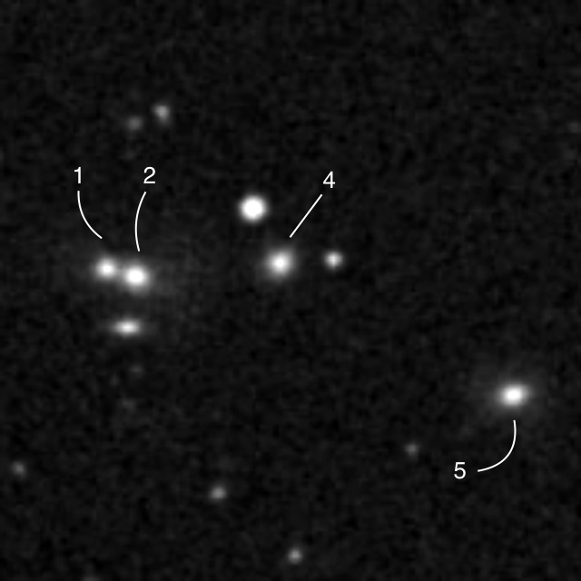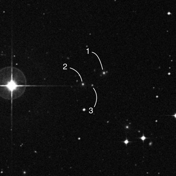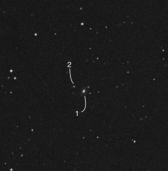 west member “1” is a faint 2:1 elongated glow with diffuse